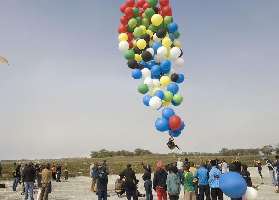 Silver Vallance az útra vízzel töltött zacskókat és légpuskát vitt, hogy magasságát szabályozni tudja. Miután felszállt, mintegy négyszáz méter magasságba ért, ám repülését a széljárás megváltozása megzavarta, és majdnem eltérítette őt úti céljától. Ekkor a légpuskával kilőtt jó néhány léggömböt, hogy irányt tudjon változtatni. Végül 35 léggömbbel érkezett Fokváros térségébe.