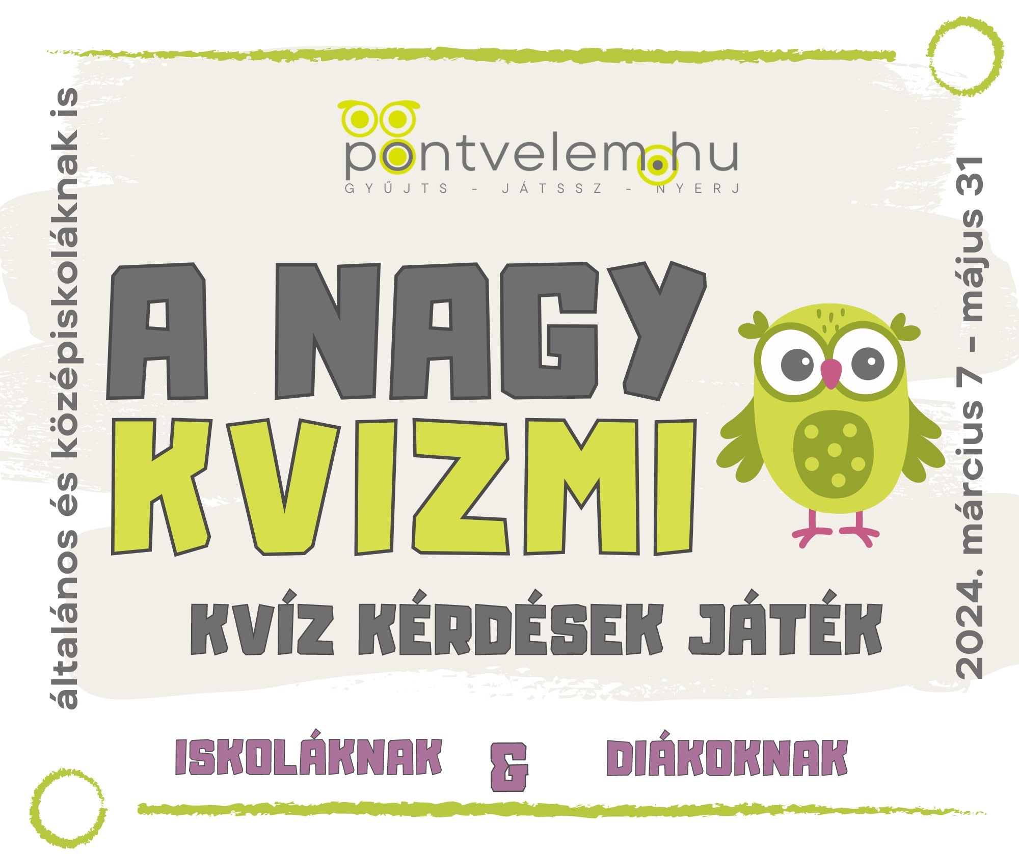 Ebben a tanévben, ősszel és tavasszal is meghirdettük a nagy sikerű KVÍZMI videós kvízjátékunkat. Az online versenyben az értékes pontok mellett díjakat is nyerhettek a kitöltő diákok.