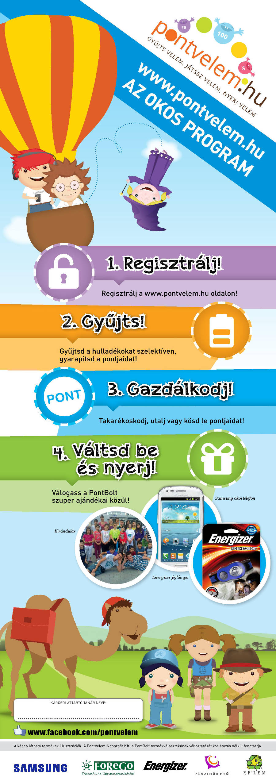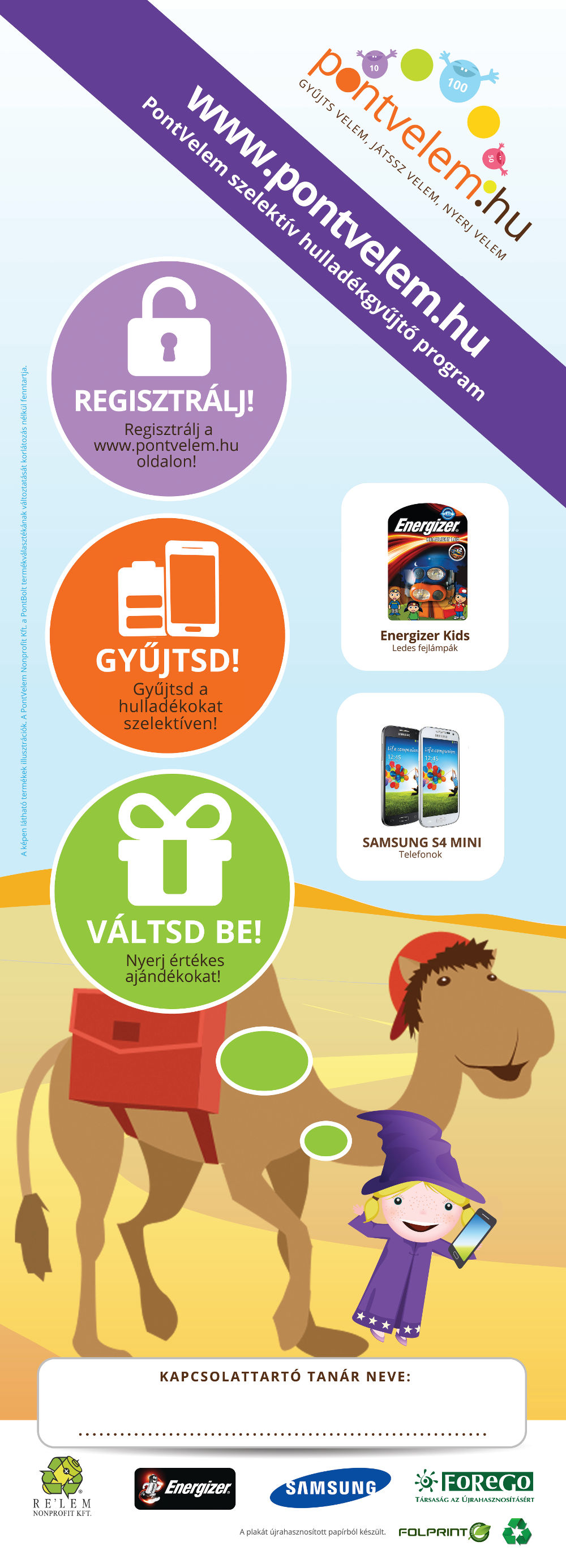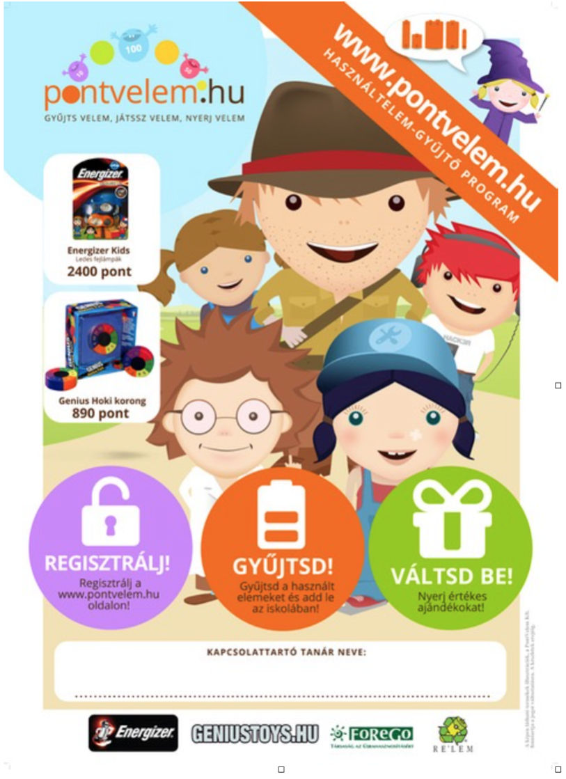 A környezettudatos gyermeknevelés érdekében 2011-ben, különleges programot indított általános iskolák számára a PontVelem Nonprofit Kft. A program egy komplex használtelem-gyűjtő verseny volt diákoknak és iskoláiknak. A tanév során a diákok az egyéni elemgyűjtő dobozukba a veszélyes hulladéknak számító használt elemeket gyűjtötték, a gyűjtött mennyiségtől függően pontokat kaptak, amikből egyéni és közösségi ajándékokat vásárolhattak.