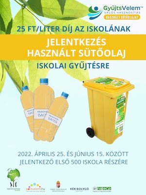 Idén egy újdonsággal is fűszereztük meg a GyűjtsVelem Programunkat, melynek keretein belül a GyűjtsVelem használt sütőolajat kampányunkhoz való csatlakozásra buzdítottuk az iskolákat országszerte a Témahét keretein belül is.