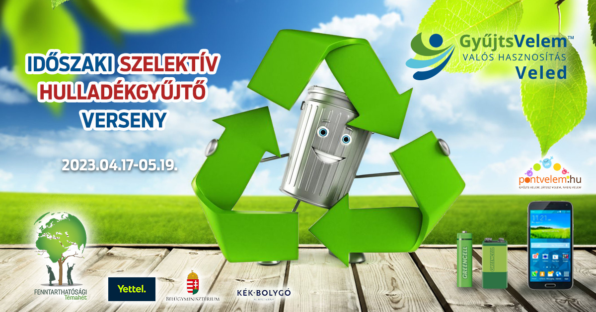 A GyűjtsVelem Időszaki Szelektív Hulladékgyűjtő Verseny 2023. április 17-2023. május 19-én 12:00 óráig tartott. Időszaki használt elem-, mobiltelefon gyűjtő bajnokság PontVelem iskolák és diákok részére a Fenntarthatósági Témahét keretein belül. A magyarországi diákok 214 iskola részvételével, összesen 6 669 db mobiltelefont gyűjtöttek össze az időszak alatt. Továbbá elképesztő mennyiségű, azaz 38 583 kg elemet hasznosíthatunk újra az 1294 felhasználó gyűjtésének köszönhetően. Használt elemet 211 iskolában, használt mobilt 104 iskolában gyűjtöttek az 5 hetes verseny alatt. Összesítve, több mint 5 millió, azaz 5 192 100 GyűjtőPontot gyűjtöttek a diákok és ezzel rengeteg hulladék kerül újrahasznosításra.