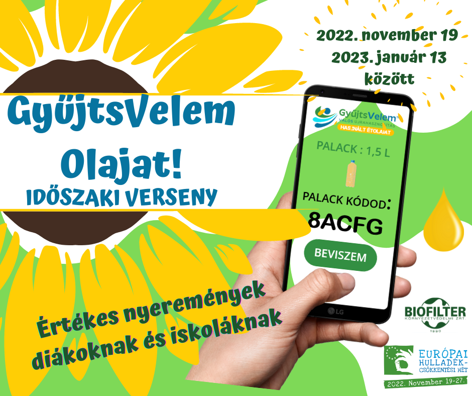 Nagy újításként bevezettük a GyűjtsVelem Olajat! használt sütőolaj gyűjtő versenyt, amelynek köszönhetően rengeteg használt sütőolaj hasznosulhatott újra. Az iskolák továbbra is csatlakozhatnak a gyűjtéshez.
